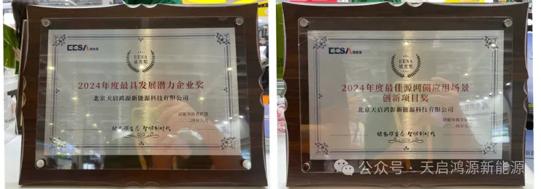 At the EESA Energy Storage Pioneer Alliance Starlight Awards Gala held that evening, Tianqi Hongyuan was honored with the “2024 Most Promising Enterprise Award” and the “2024 Best Source-Grid Side Application Scenario Innovation Project Award.” These accolades not only recognize the company's past achievements but also affirm its future growth potential.