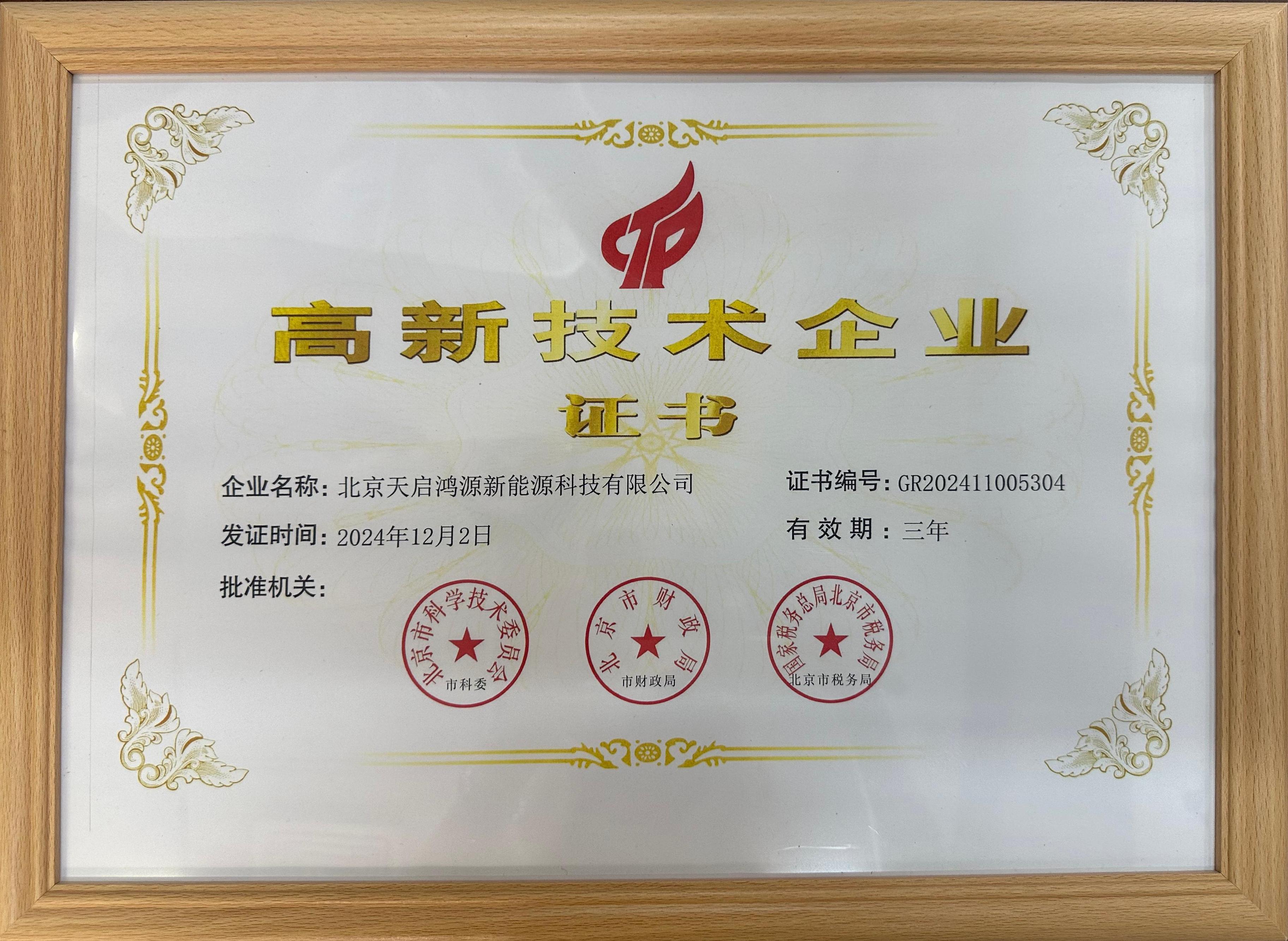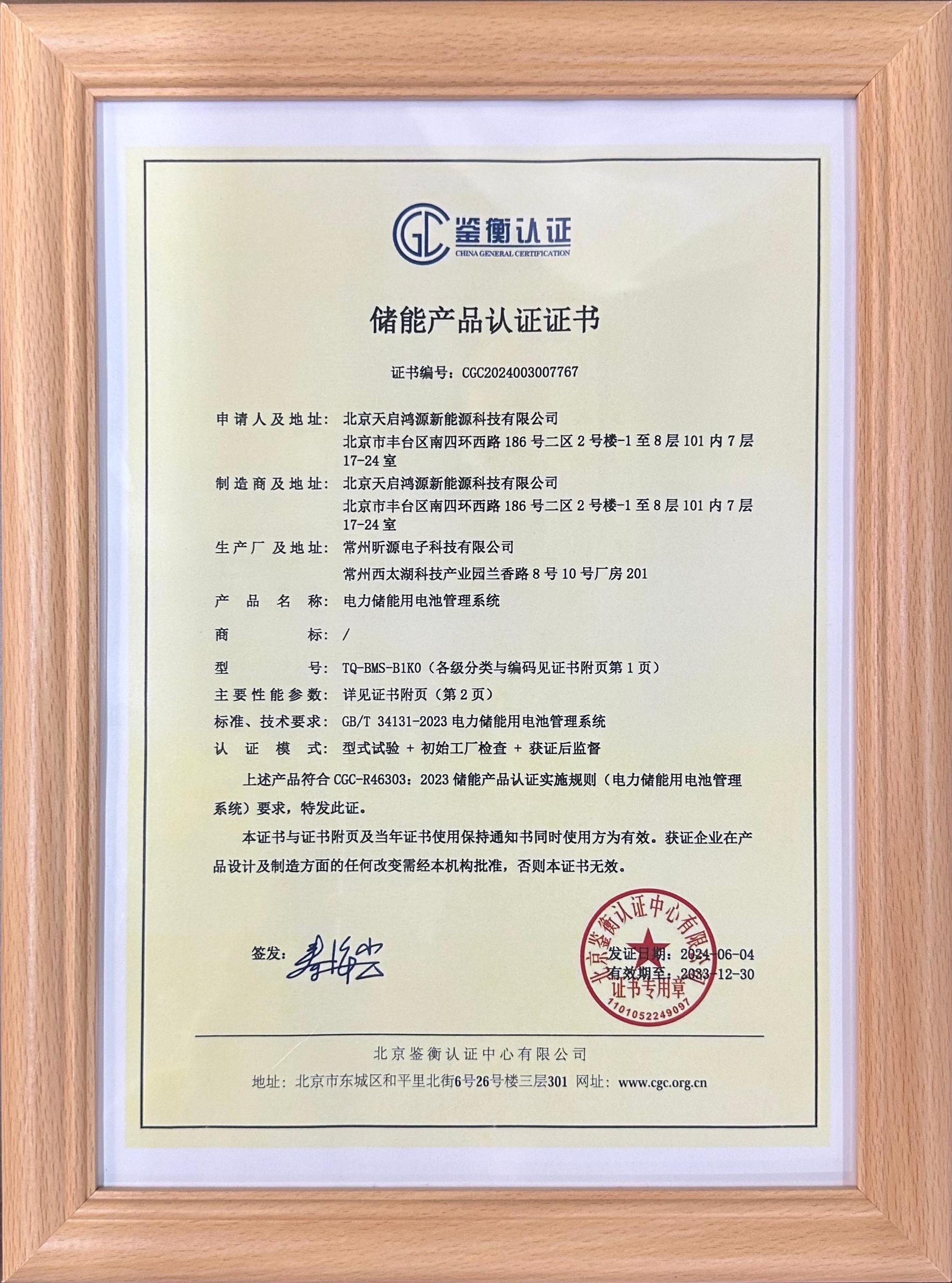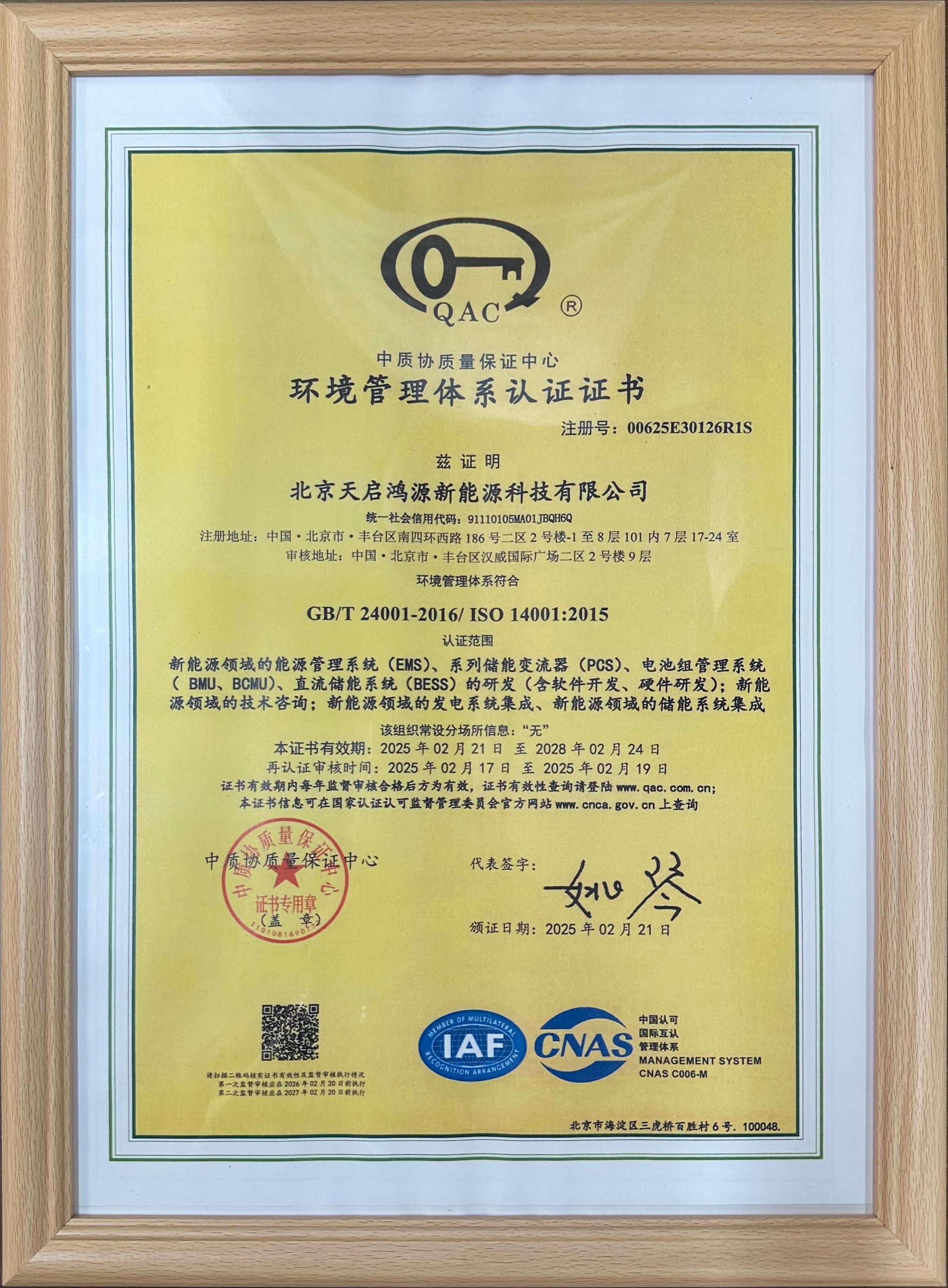 Beijing Tianqi Hongyuan New Energy Co., Ltd. was established in 2019. The company holds certifications as a High-Tech Enterprise and a Beijing “Specialized, Refined, Distinctive, and Innovative” SME. It has also obtained ISO certifications for quality, safety, environmental, and training management systems. Our energy storage products carry multiple certifications including TUV and Jianheng.